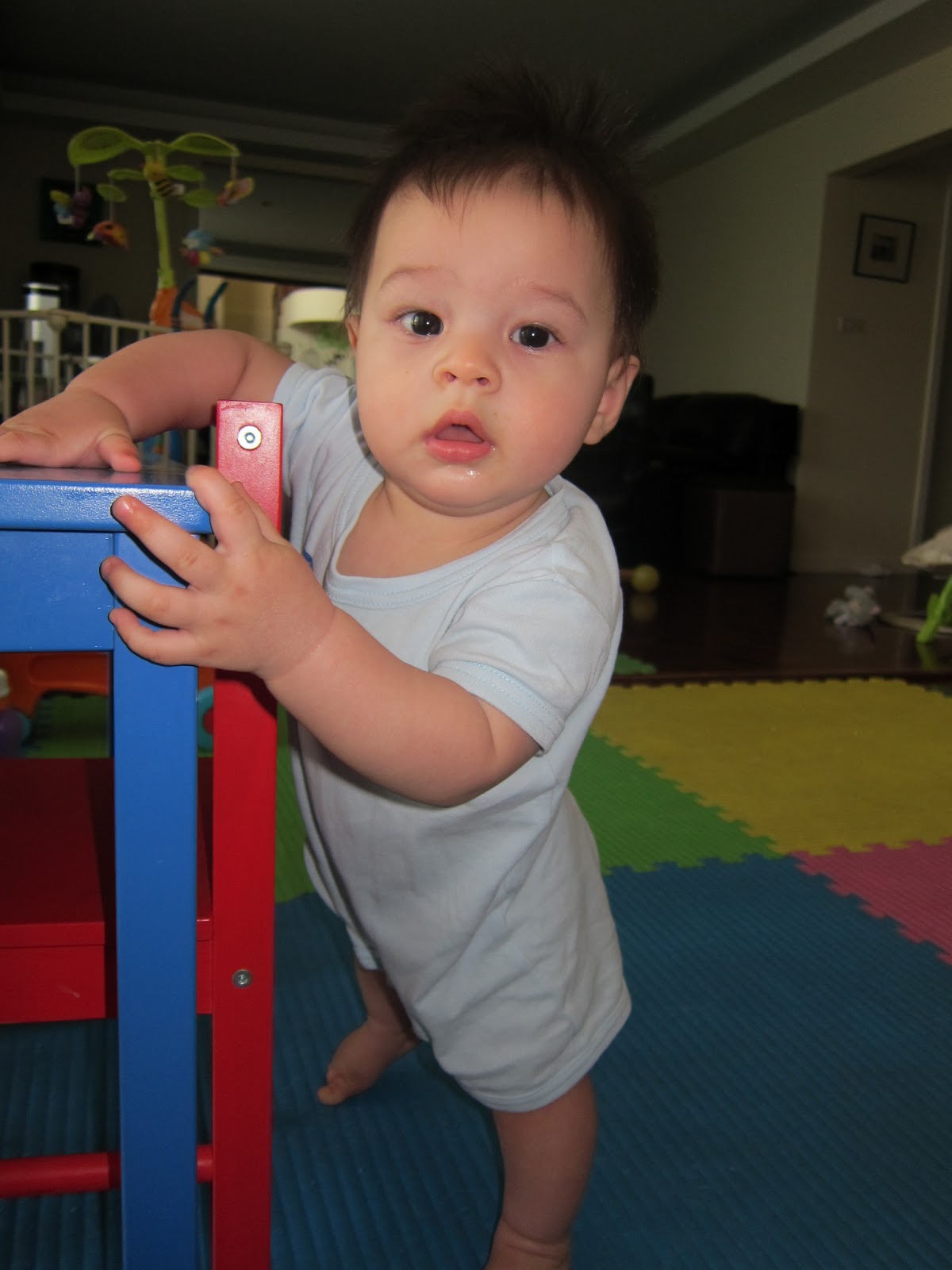 He still sucks his thumb when he is hungry, wants to sleep or when he does his own self-soothing; and he has been doing that since he found his thumb at about 2 or 3 months old (I’ll start worrying if and when he continues to suck his thumb when he turns 10). Teething has been quite slow for this little boy, but otherwise, is developing like most one year olds do.(I’ll start worrying when they do not pop when he turns 4)