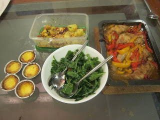 This time, he chose to make Chicken Piri-Piri, Egg Tarts and some sort of potato dish with feta cheese.They turned out pretty decent, but he had spent more than an hour in the kitchen…just a little more than 30 minutes too long.