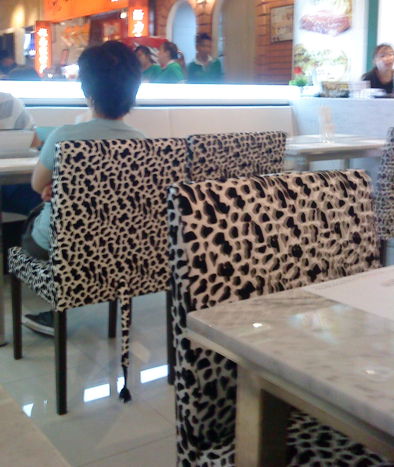 So far, the service has been nothing but excellent. I really like the funky-looking chairs; cow-print with a tail and all to complete the look!