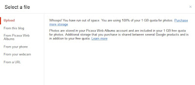 In trying to upload some photos to my blog post on blogger.com, I encountered this message: