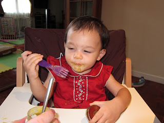 The mess she makes is unbelievable, so much so that I feed her with only her diaper on every morning after her shower. There are days when I realised that I have splotches of dried baby food sneaking up on my clothes or my hair or my eyebrow after being in the office for a few hours!