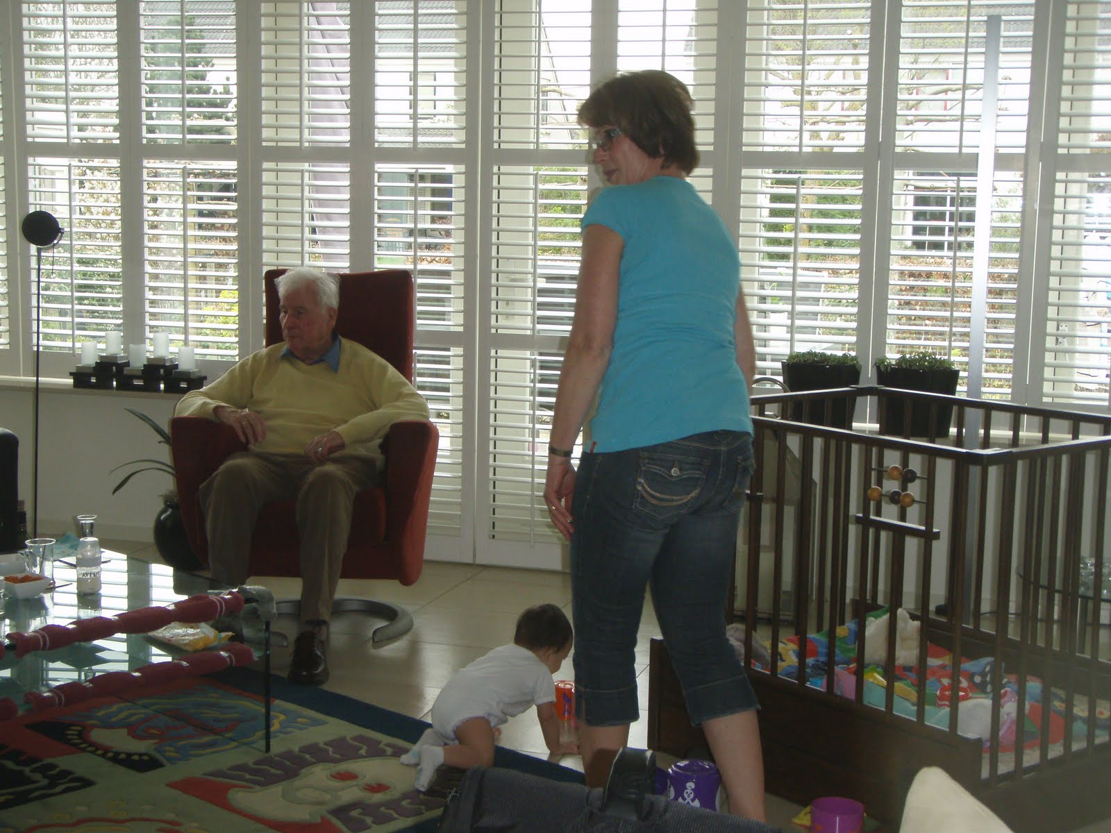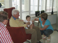 Spud getting acquainted with her great-grandfather, Opa Hans as Oma & Opa looks on: