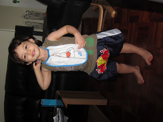 Recently, while cleaning up her wardrobe, I (re)discovered that she had a Muay-Thai boxing shorts tucked away in a pile of her clothes. It was still new and has yet to be worn. It was a gift from her Dutch Uncle and we have completely forgotten about it because for a long time, that shorts was just too big for her. It was a nice find, and quite a cute little number! Definitely a perfect fit for her to be running around the house with.