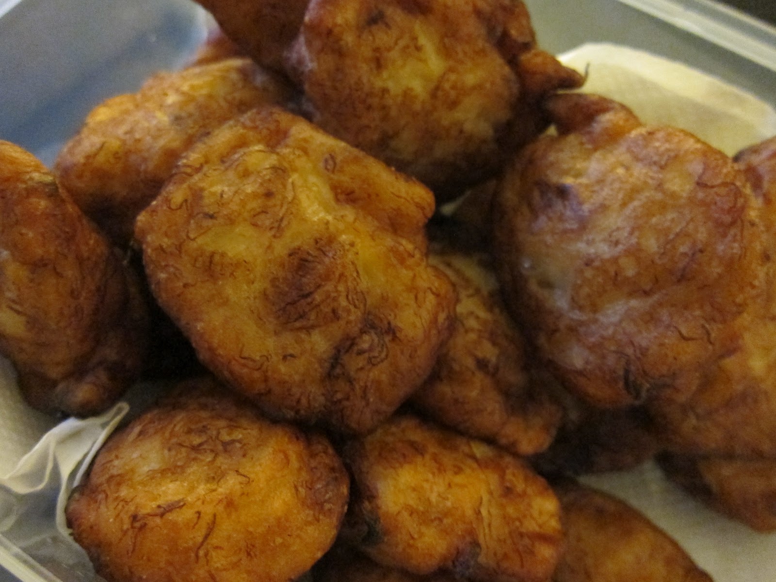 Add a little bit of vanilla essence and mix in some rice flour, I then tossed them into a frying pan filled with hot oil and deep fry them for a few minutes till they turn golden brown.