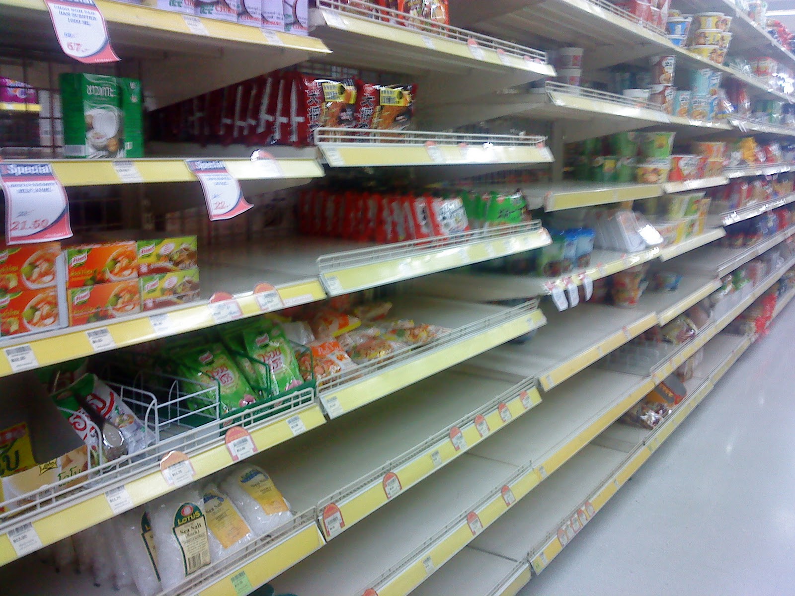 As of this morning, I received an SMS update indicating that Tesco-Lotus will be closing stores nationwide as suppliers were all unable to make the deliver. In short – they have nothing to sell!