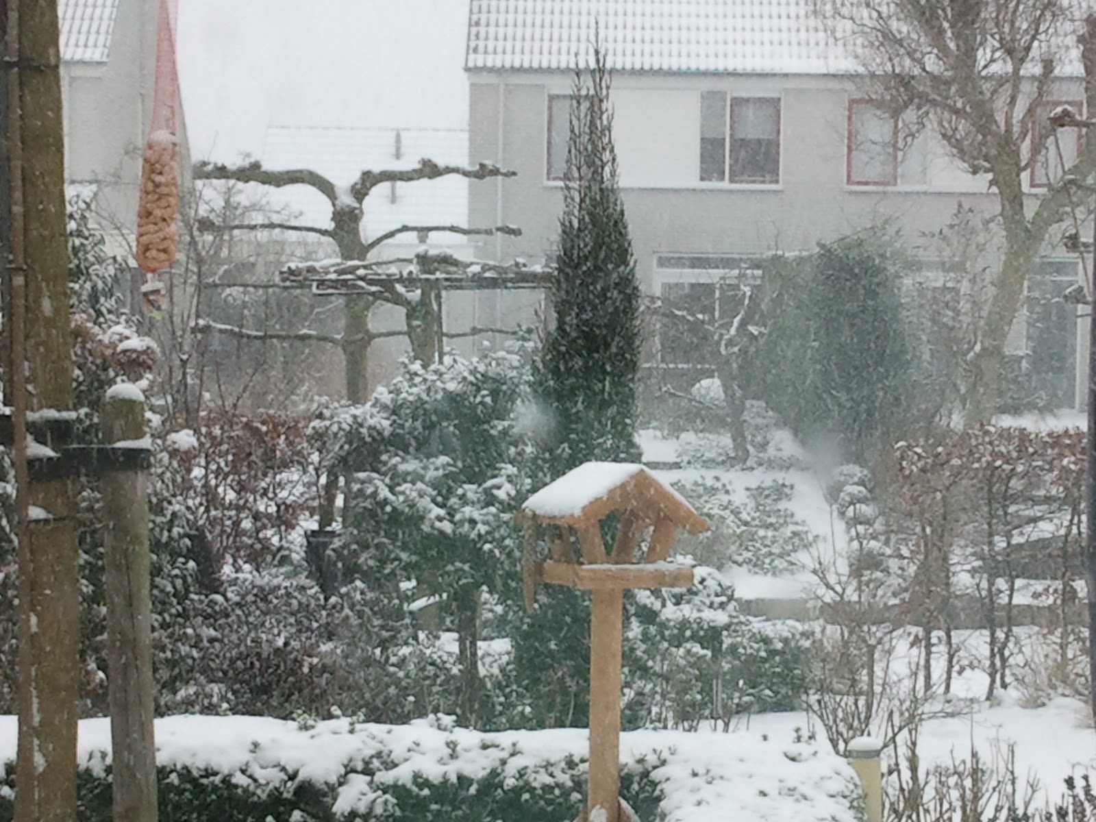 It had not snowed since my last post a few days ago, and today, right towards the very end of our trip, it kept on snowing for a good 4 hours (at least!). It was snowing so hard that we could not get out of the house – the kind of weather which my mother-in-law says she hates. The scenery surrounding this neighborhood now is so different from a few days ago – everywhere is white! Even the canal right behind my parents-in-law place has now gone frozen solid; all ready for skaters to start skating on natural ice!