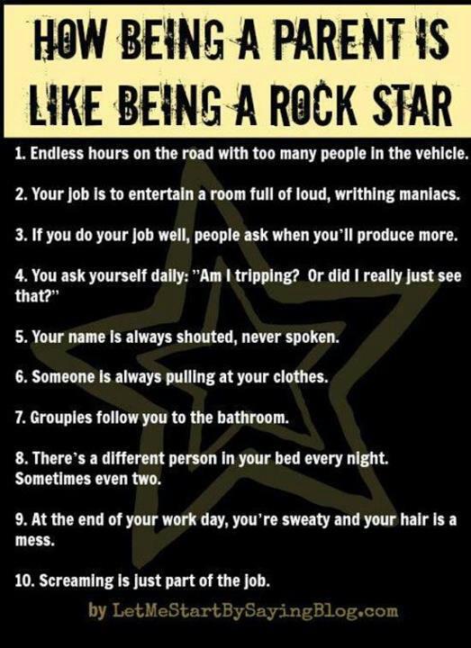 April 22, 2013 Rock stars Category: Being Parents It’s official – as a mother, screaming is part of the job. And that makes me a Rock Star! Post navigation « Previous post: Latte Art» Next post: Eavesdropping Spud Posted by: Ann GrubbsnCritters | 0 Comments ADD YOUR COMMENT Click here to cancel reply. Name (required) Mail (will not be published) (required) Website Notify me of follow-up comments by email. Notify me of new posts by email.