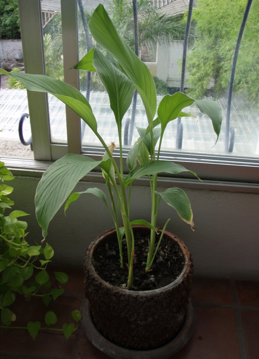 I have no idea what it was that we have been growing in our balcony before this, where the leaves looked kind of funny. The scary thing was, I have even used some of those leaves for my rendang and other dishes, smelling as fragrant as the real tumeric leaves. God knows what the hell they were. Silver Bullet was speculating that they could just be weeds. Hence, the reason it grew and grew and grew relentlessly.